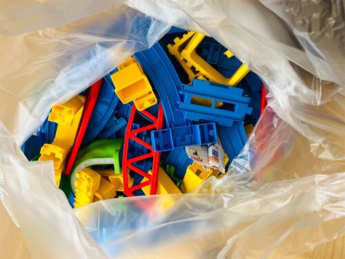 テレビ台の引き出しは、リビングの一等地! 今は、下の子のおもちゃ プラレールを入れていました。 (映り込みがモコモコ靴下&ガニ股なのは見逃して) 最近、全然プラレールで遊ばなくなった… あれだけ電車や車が好きだったのに… あの頃の小さい我が子はも…