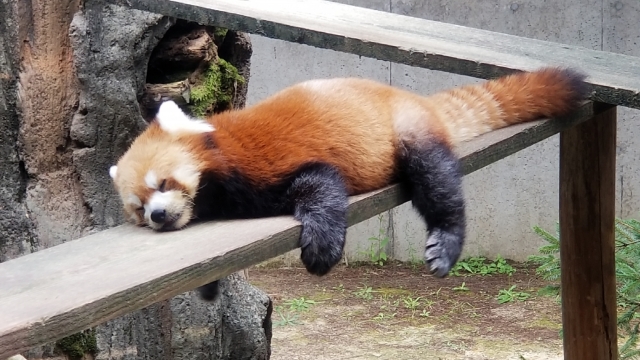 上のレッサーパンダみたいな寝方。