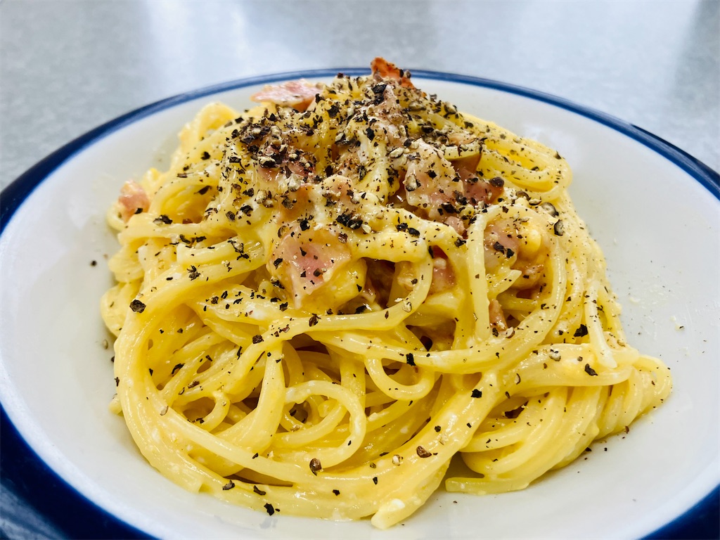 うん、ベビーチーズでも、ちゃんと溶けてカルボナーラになりました!
